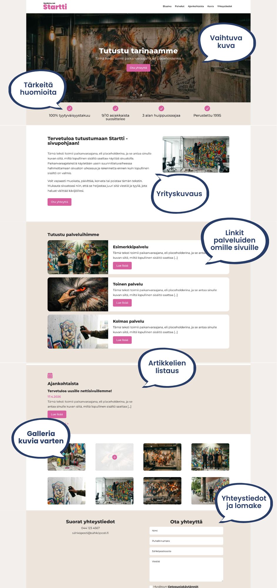Olemme julkaisseet uuden Startti -paketin, joka on suunnattu erityisesti aloitteleville yrityksille sekä tilanteisiin, joissa verkkosivuilta tarvitaan selkeä ja toimiva perusratkaisu ilman laajaa räätälöintiä.
